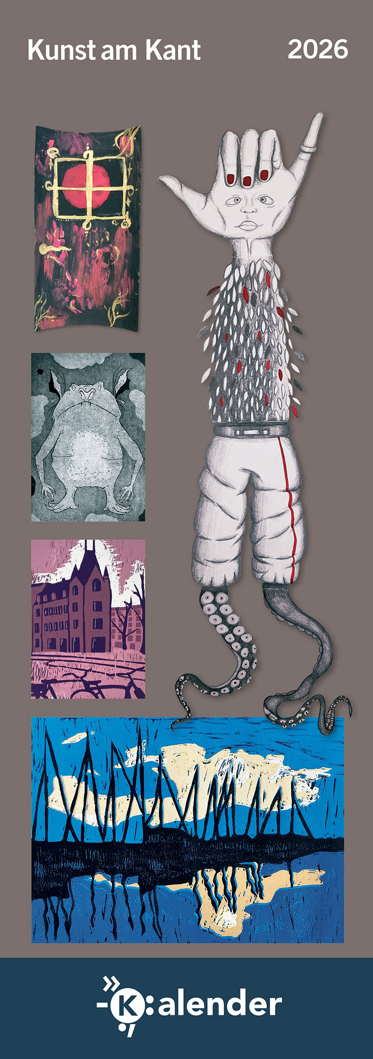 Da ist er wieder, der kantige und praktische Kalender, randvoll mit künstlerischen Arbeiten von Schülerinnen und Schülern des Kantgymnasiums. Druckfrisch und mit hilfreichen Terminerinnerungen rund um das Jahr 2026 wartet dieses individuelle Printmedium darauf von euch gekauft zu werden. Nur 6€! Und nur solange der Vorrat reicht…