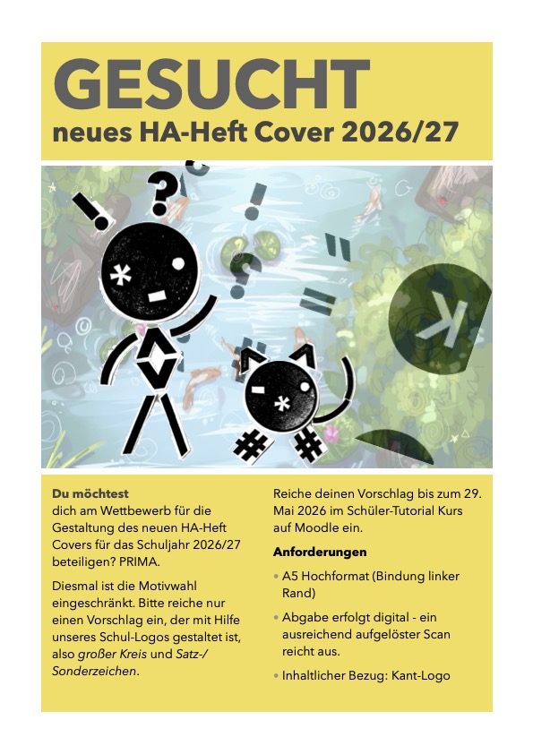Du möchtest dich am Wettbewerb für die Gestaltung des neuen HA-Heft Covers für das Schuljahr 2026/27 beteiligen?