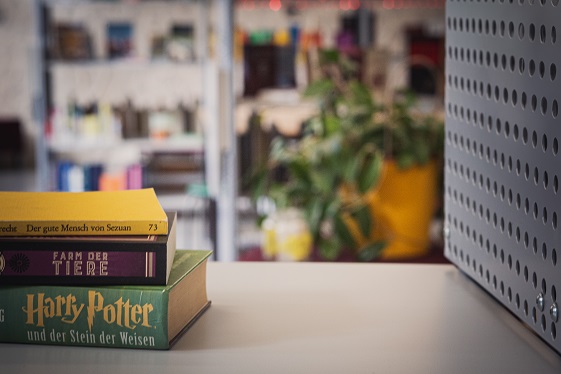 In der Schulbibliothek können Bücher, digitale Medien, Zeitschriften und Spiele entliehen werden.